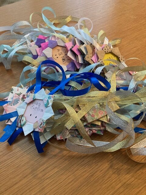 子供会から合唱のプレゼントや手作りのメダルを送呈。