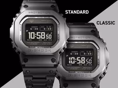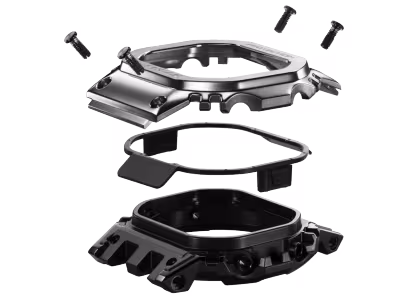 ベゼルとセンターケースを上下で連結した構造を開発。ケースサイドから見える造形が構造の美しさを強調。フルメタルながらG-SHOCKの耐衝撃基準をクリアし、気密性に優れたスクリューバックケースも採用しています。