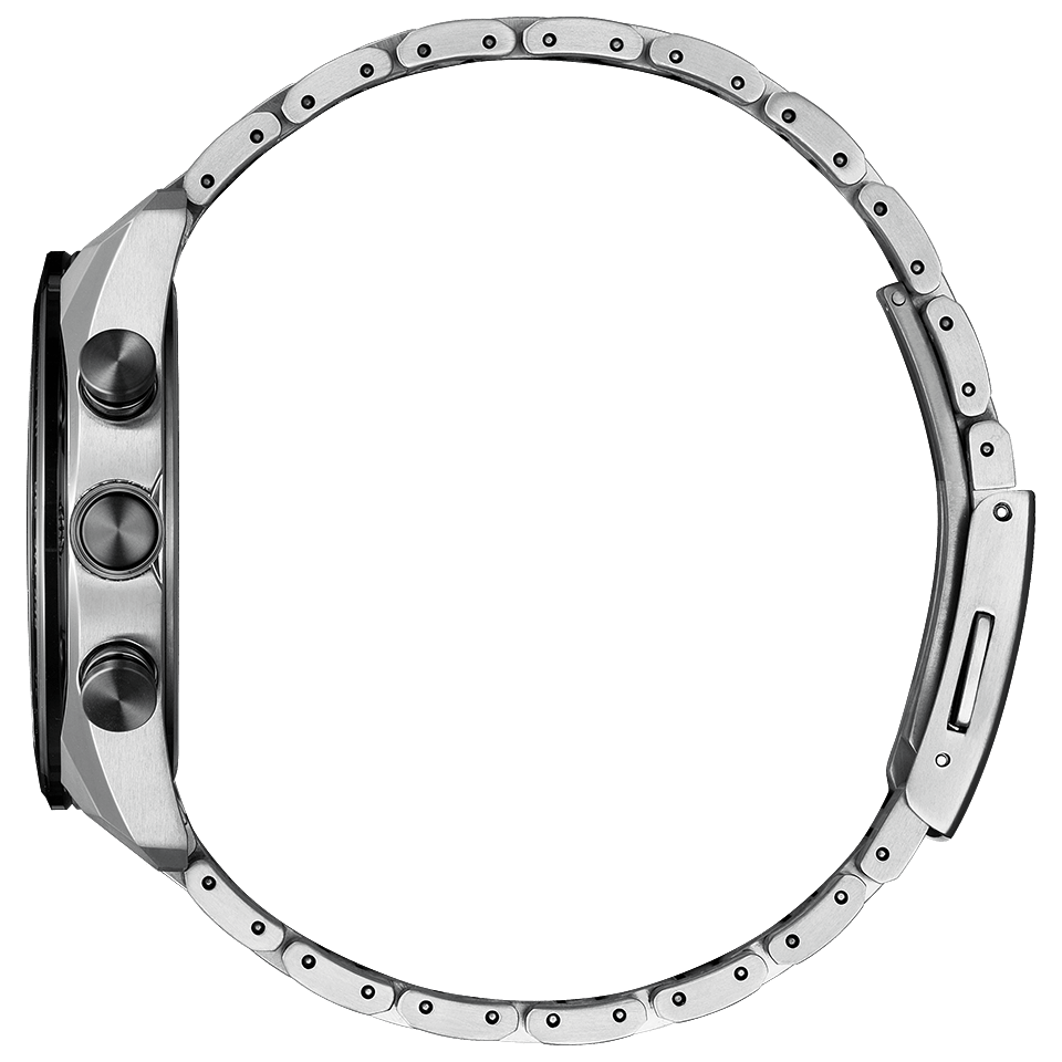 モノトーンでまとめたカラーリングで視認性を確保しました。ベゼルはGPS搭載モデルで人気のサファイアガラスリングを搭載した高級仕様で、サファイアベゼルの上にシルバー蒸着で仕上げた都市名表示が輝きます。